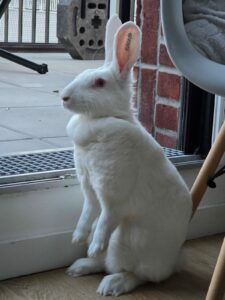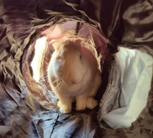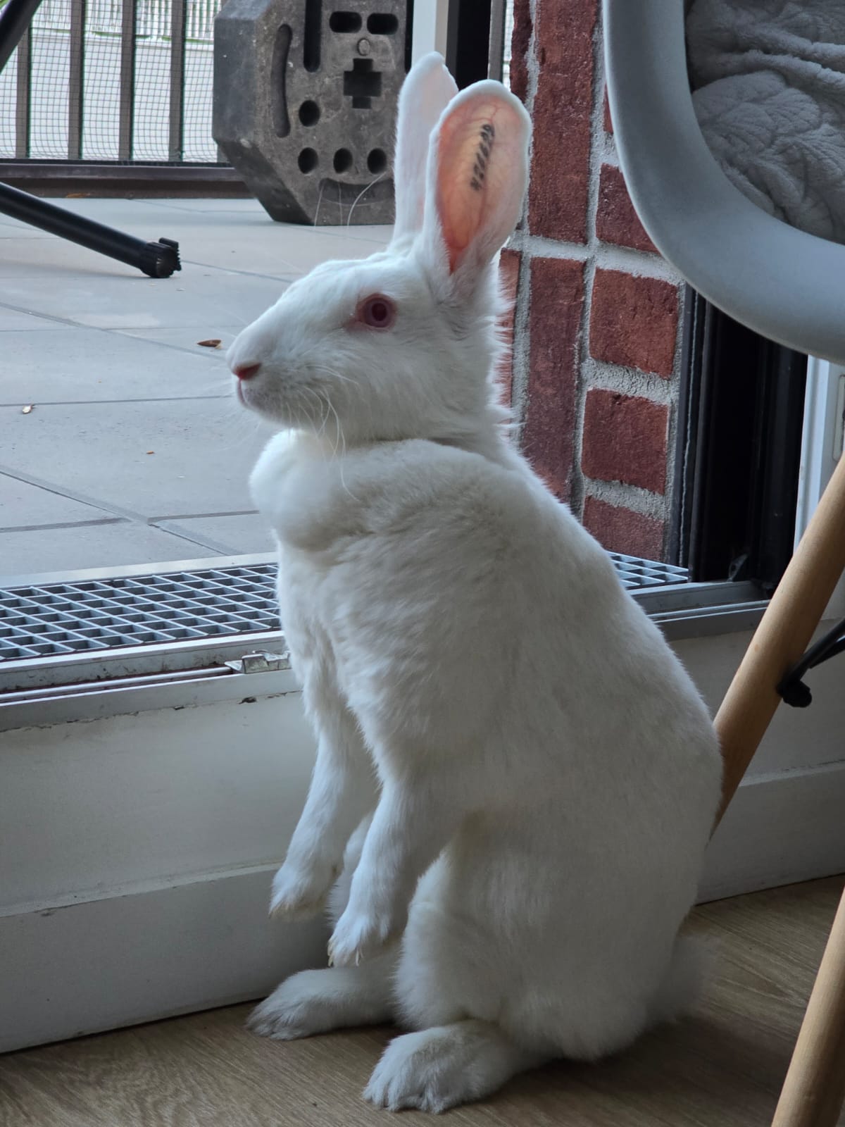Curieuse, elle aime explorer et apprécie la terrasse. C’est une lapine indépendante, qui devient de plus en plus câline avec le temps.