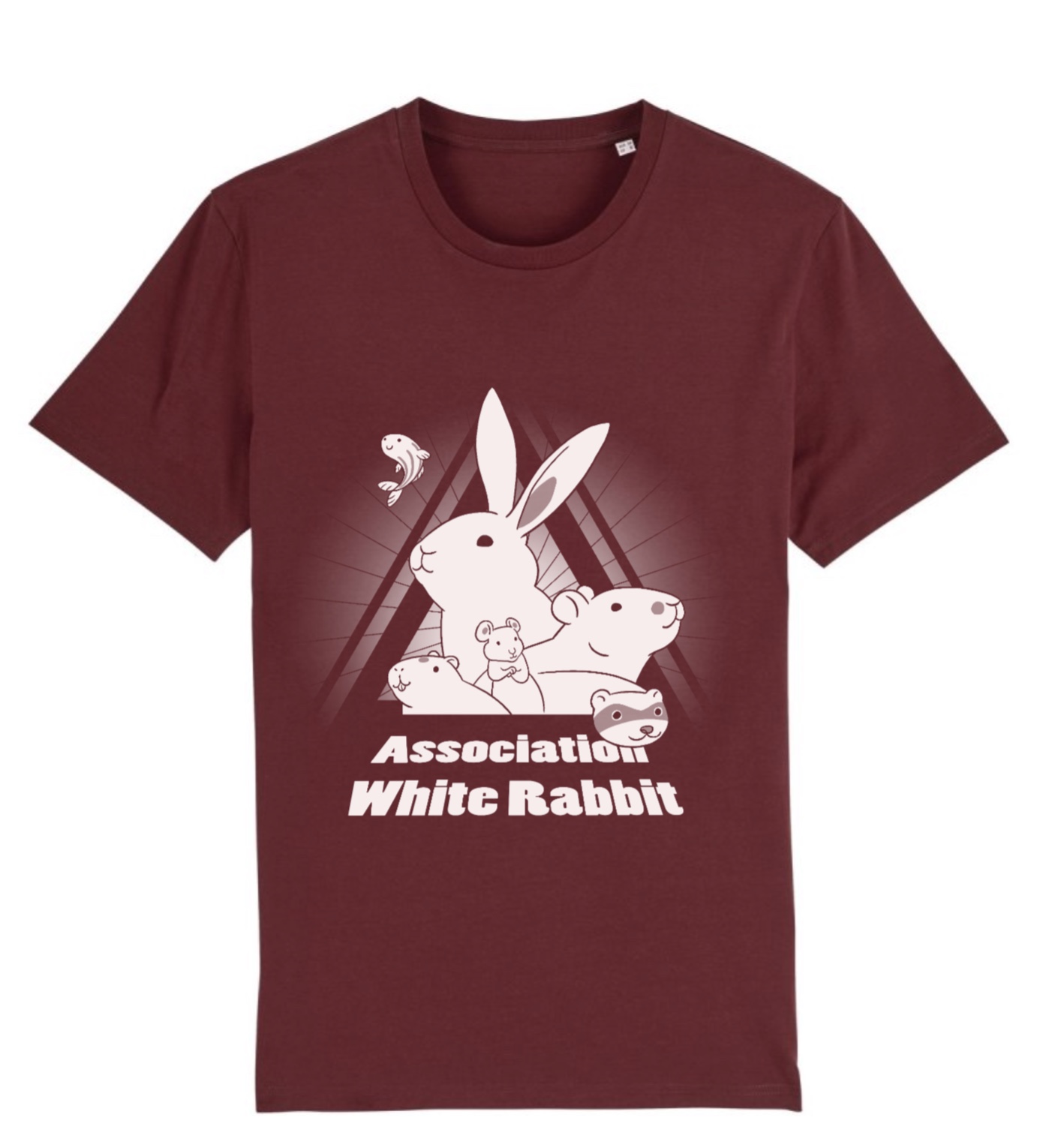 Couleur : t-shirt rouge bordeaux, logo blanc plein